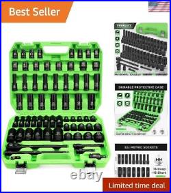 SWANLAKE 1/2″ Drive Set, 66-Piece Standard SAE 3/8″-1-1/4 and Metric 8-24mm Size, 6 Point, Cr-V, 1/2-Inch Drive Ratchet Handle, Drive Extension Bar, Impact Universal Joint. High quality forging, forged from heat treated chrome vanadium steel, each socket surface treated with corrosion resistant black phosphoric acid to prevent oil and rust. Product specification includes 1/2-Inch Drive Ratchet Handle, 3″, 5″ and 10″ drive impact extension bar, 1/2″ universal joint, 3/8″ (F) to 1/2″ (M) Adapter and the following socket sizes: SAE, Deep: 3/8, 7/16, 1/2, 9/16, 5/8, 11/16, 3/4, 13/16, 7/8, 15/16, 1, 1-1/16, 1-1/8, 1-1/4. (inches), Shallow: 3/8, 7/16, 1/2, 9/16, 5/8, 11/16, 3/4, 13/16, 7/8, 15/16, 1, 1-1/16, 1-1/8, 1-1/4. (inches), Metric Sizes: Deep: 8, 10, 11, 12, 13, 14, 15, 16, 17, 18, 19, 20, 21, 22, 23, 24mm. Shallow: 8, 10, 11, 12, 13, 14, 15, 16, 17, 18, 19, 20, 21, 22, 23, 24mm. Laser marking, each with a clear laser size mark, makes it quick and easy to select even in dim light. Customized storage boxes, each with a designated slot, so that the socket does not fall off easily. Sizes are also printed next to each card slot for easy identification. 6-point socket design expands the contact surface between the socket and the fastener, increasing the locking force, reduces wear and prevents rounding off at corners.